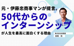 元・伊藤忠商事マンが提言。「50代からのインターンシップ」が人生を最高に面白くする理由 2026年01月20日 blog 50歳を過ぎ、「会社の看板」が通用しなくなる前に、あえて若者の下で「新入り」として働く。この一見プライドが邪魔しそうな経験こそが、人生後半を劇的に面白くしてくれます。
